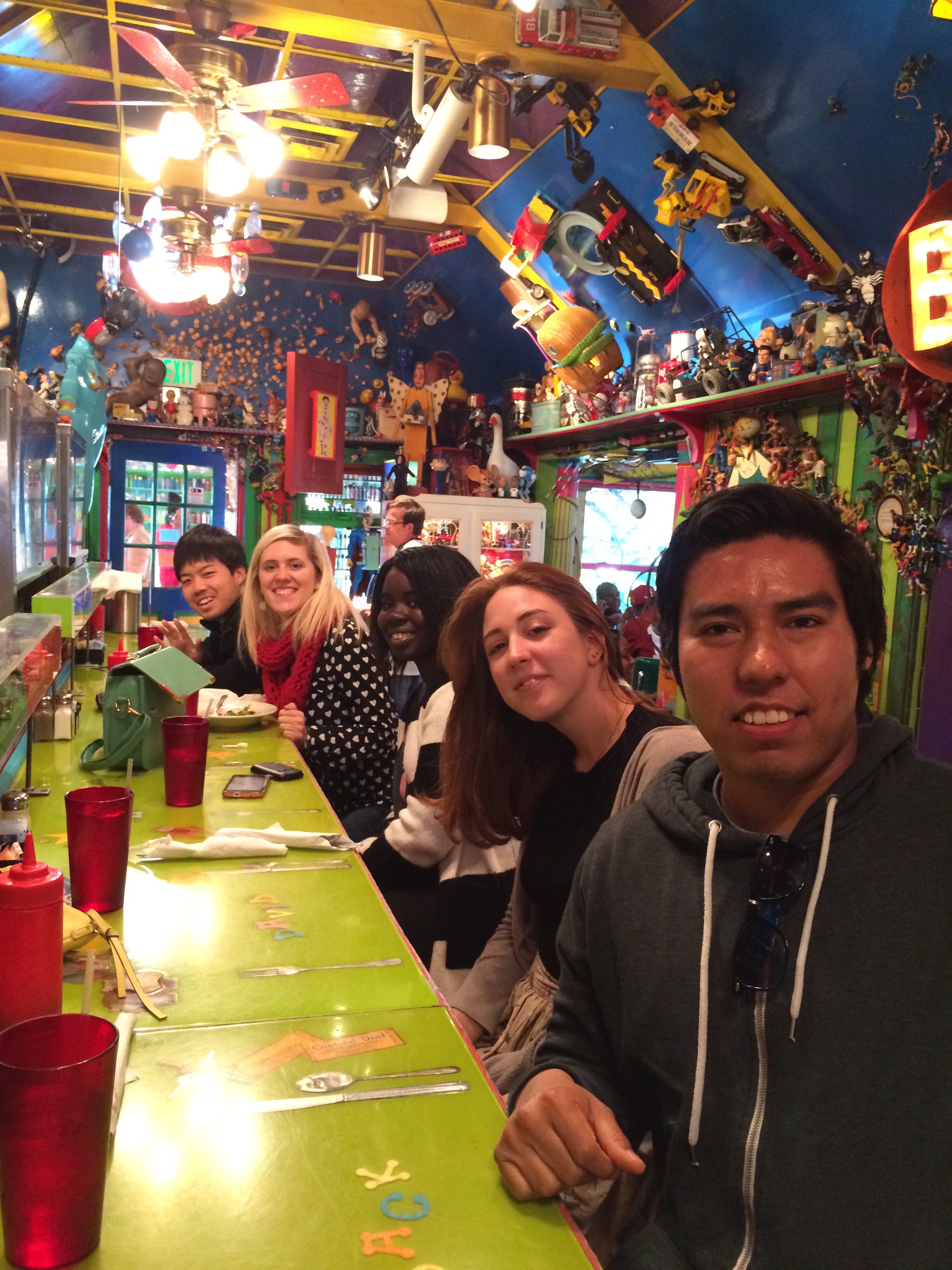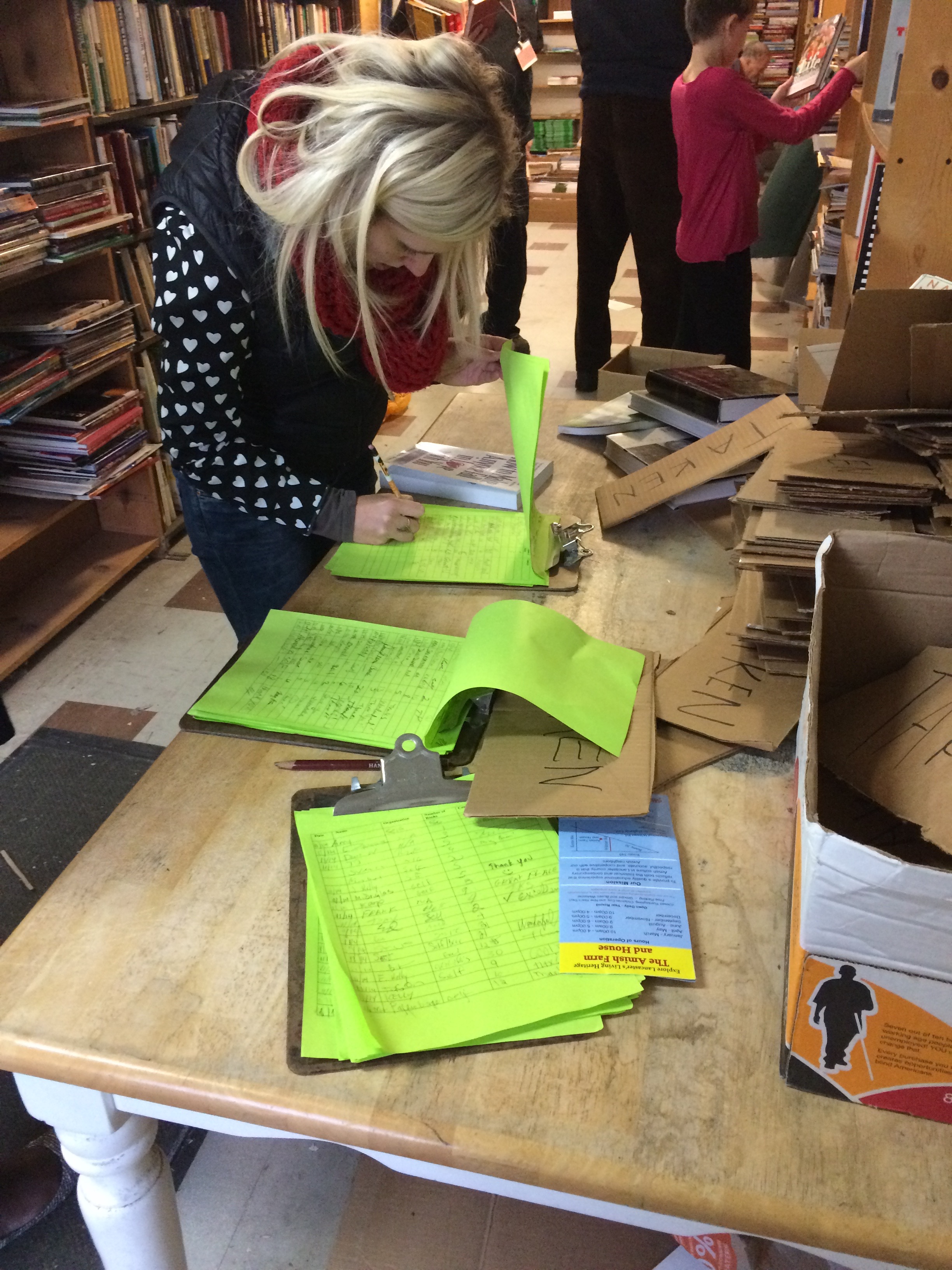 On the way to our next stop, The Book Thing, we stopped at Paper Moon Diner for lunch, which was recommended by a friend of our German student. The Diner seemed quite similar to the museum with colorful eclectic displays of just about everything from dolls to sailboats! The menu was just about as far ranging as the décor! Our student from Japan tried the macho nachos, while others tried crab quesadillas, salmon pasta, egg omelets and grilled cheese- there was something for everyone! Once our bellies were full, we decided to head to our final destination- The Book Thing!