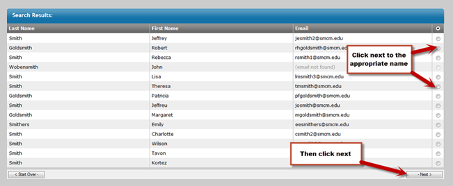 If you are searching for a SMCM faculty or staff member the next screen requires that you select your appropriate recommender.